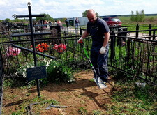 Уборка травы на одиночной могиле